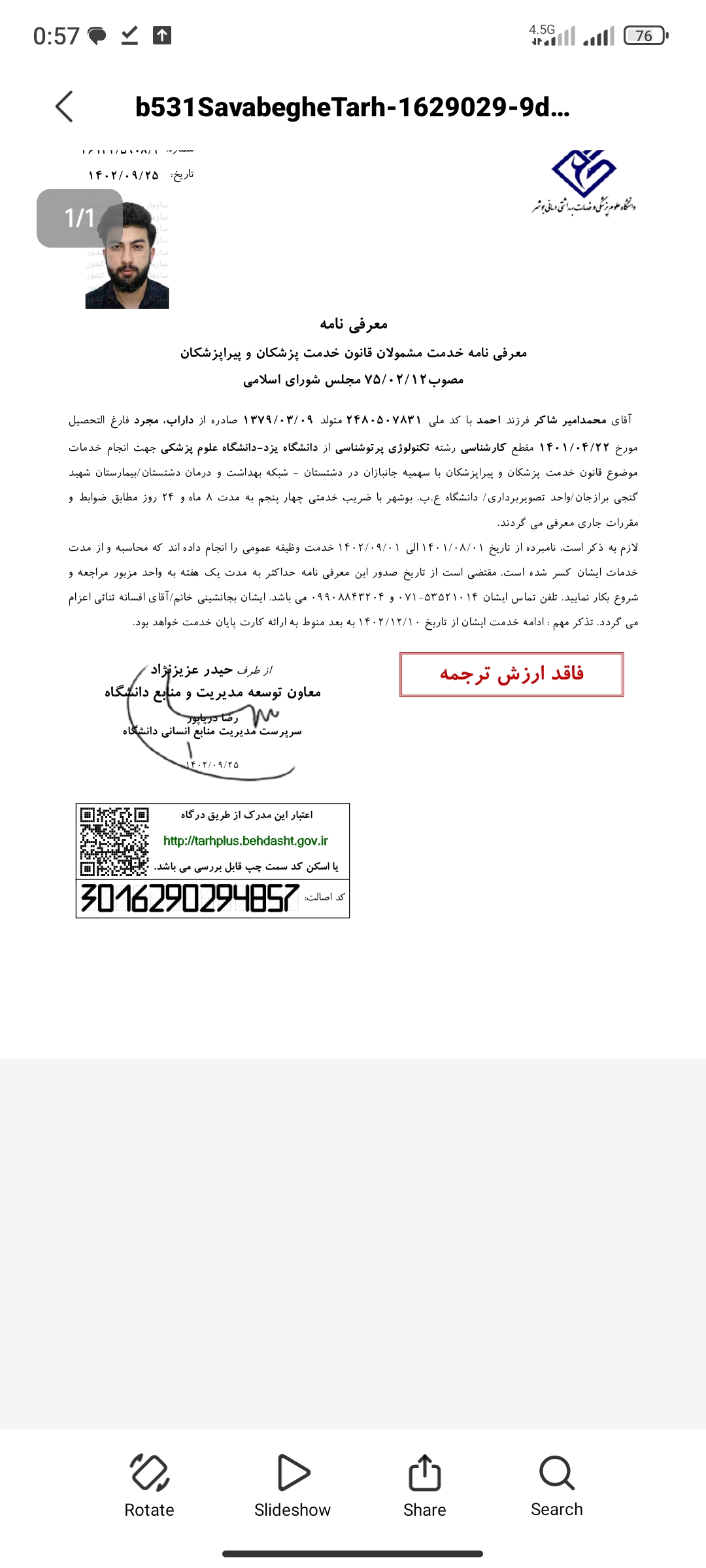 کارشناسی ارشد تصویر برداری پزشکی - 1 سال کار در مرکز تصویر برداری دکتر فخری زاده اهواز - مسئول بخش ر...